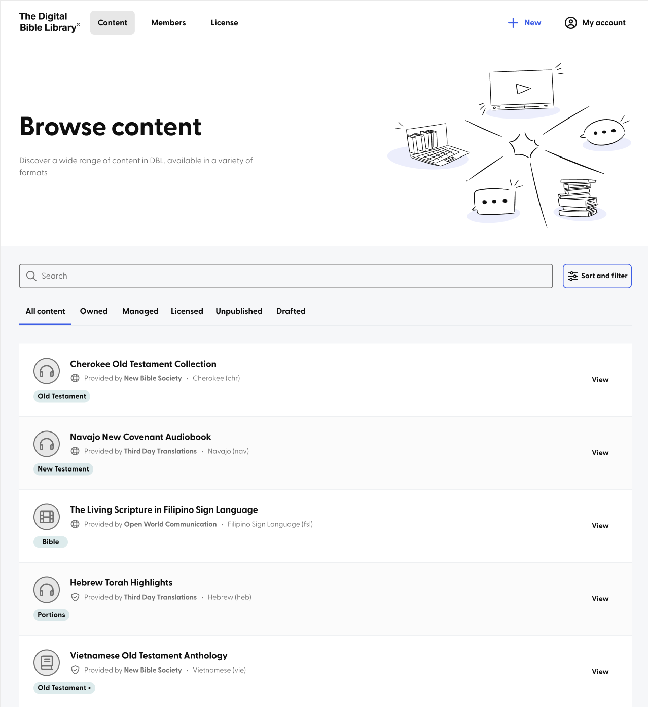 DBL makes it easy to discover its extensive range of content. To access this content, click on ‘View content’ under ‘Browse Content’ in the DBL home screen.