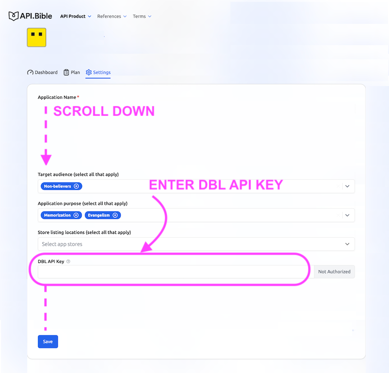 Enter your DBL API Key into your API.Bible’s app settings.