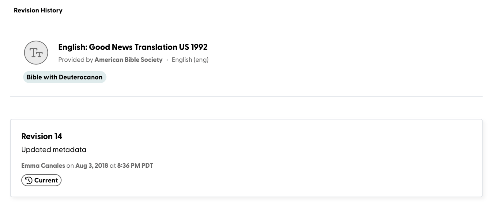 When DBL members view a content item’s summary page, the bottom will have a link titled: View revision history.