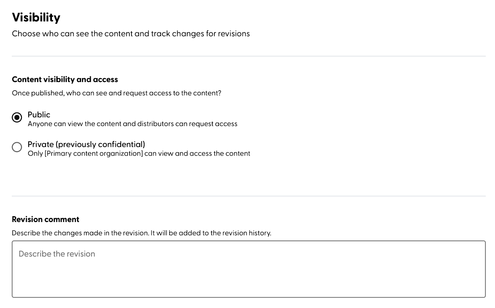When you choose the value of ‘Private’, the content is visible only to the Contributor organization. Other DBL members will not see the availability of this content item.